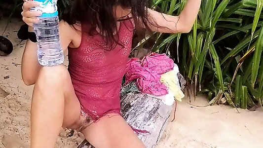 Public Beach Butt Plug Insertion by a Solo Female