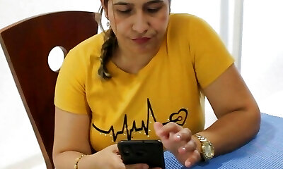 I was witnessing porn video on phone in bed room and holding penis in hand Tamil aunty Bavana came in shocked I pulled her and ha