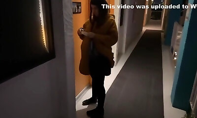 4'8'' 142cm 9 Month Pregnant Asian Milf getting rubbed all over with baby lubricant - Dual webcam view from below and in front