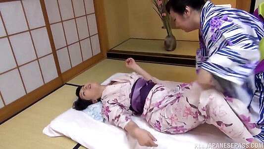 Mature Japanese fuckslut in her kimono attempts out 2 chisels