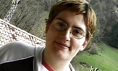 A tiny light-haired teen lesbian with pierced tongue gives a proper licking to her mature girlfriend with glasses