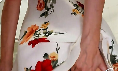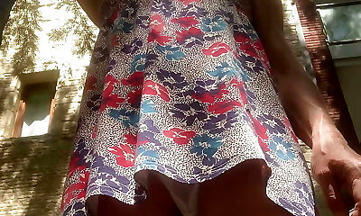 Senior wooly pussy pissing in nature. Wet dirty cunt outdoors. Close-up and POV. PAWG and white panties. Chubby milf. Publi