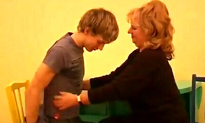 Dear mother-in-law takes off her panties and pees with her legs wide open in a bucket next to her sonny-in-law