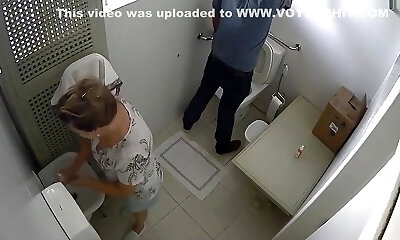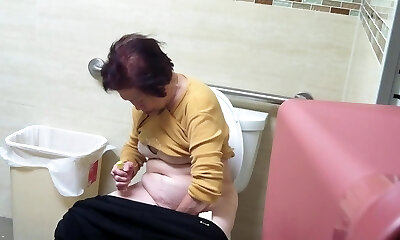 Hairy pussy of a mature Asian damsel in the public toilet room